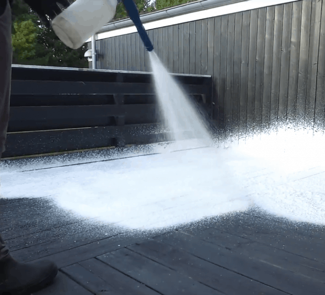 Undgå at bruge højtryksrenser, da det kraftige tryk kan beskadige overfladen og skabe endnu bedre grobund for alger.