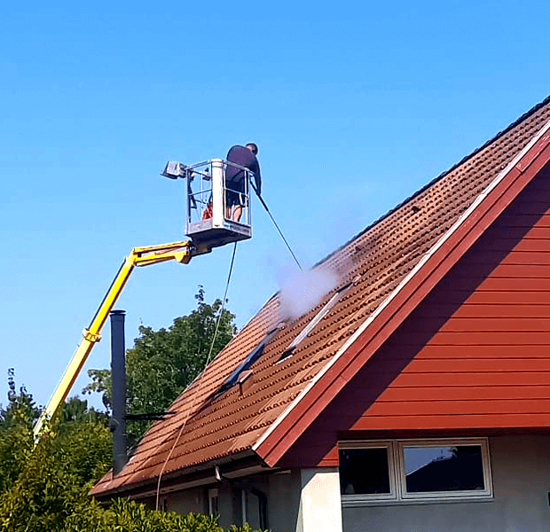 Da tagrens foregår i højden, kræver det erfaring og det rette udstyr. Hos Dansk Fliserens ApS har vi mange års ekspertise, alle nødvendige godkendelser og udstyr i topkvalitet. Det er din sikkerhed for en professionel og tryg behandling – både for private og erhverv.